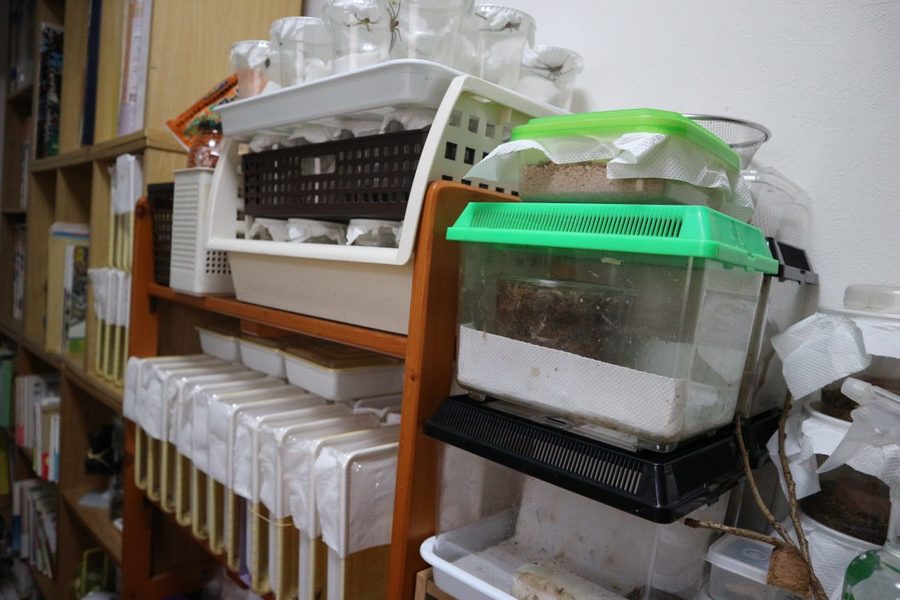 石川くんは部屋でたくさんの本物の昆虫も飼っていて、カマキリはもちろん、クワガタ・ゲンゴロウ・クモ・ムカデ・ゴキブリなど。