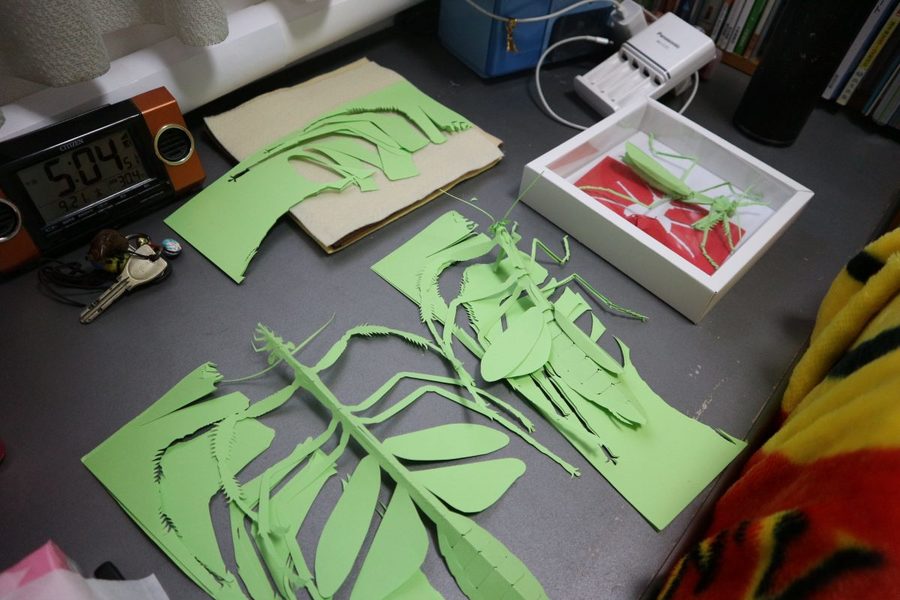1年で約200点、作り始めてから10年なので、約2,000点の切り紙昆虫を制作したそうです。