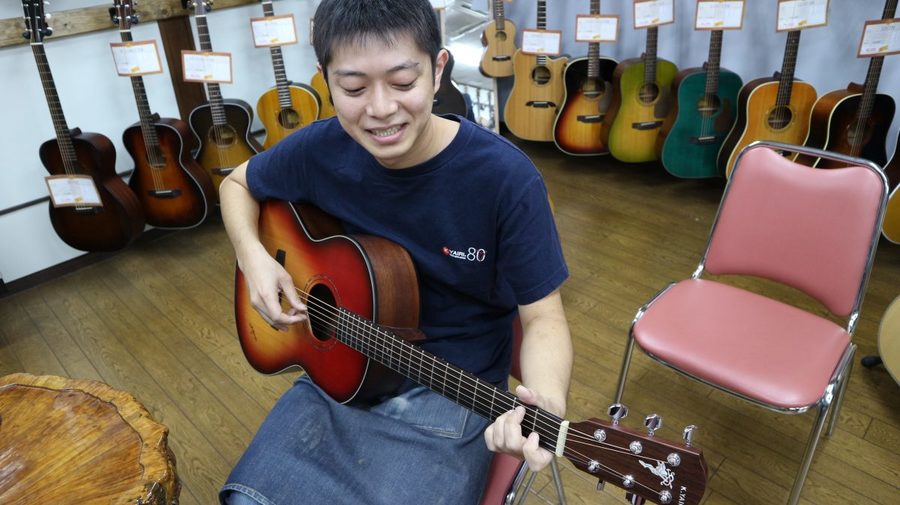 職人さんにヤイリギターを弾いて頂きましたが、優しくて、吸い込まれるかのような心地いい素敵な音色でした…。