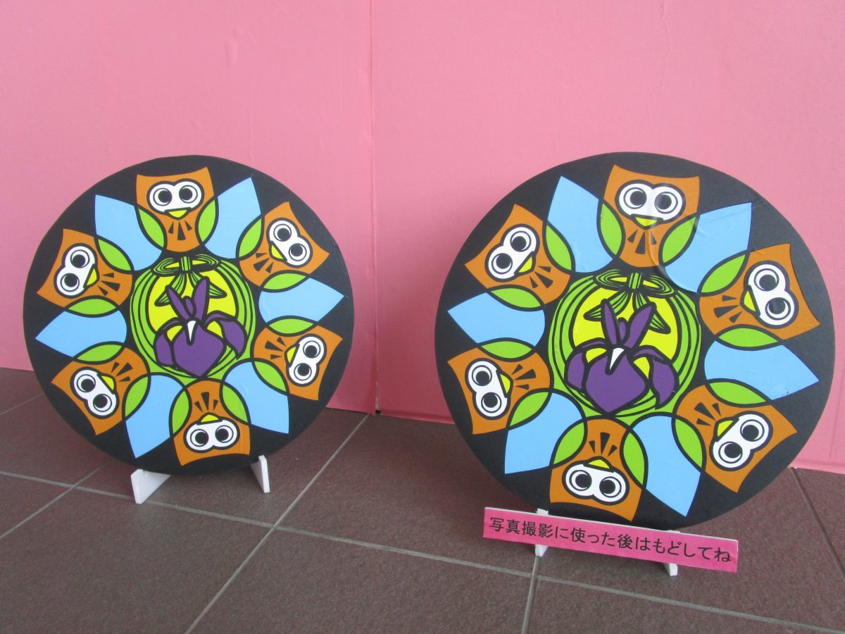 愛知県の鳥で「幸運を呼ぶ鳥」と言われている「コノハズク」と、愛知県の花で「幸運が来る」と言われている「カキツバタ」がモチーフになっています。