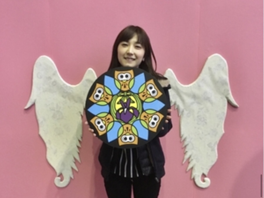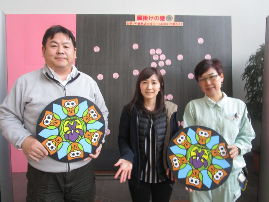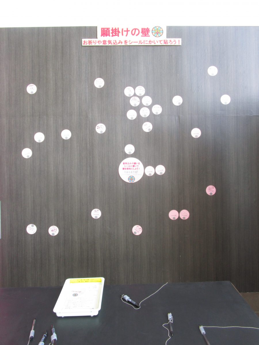 マンホール型のピンクの紙に想いを書いて皆で壁を桜色にしたい!と優しい願いを込めて発案した山崎さん,