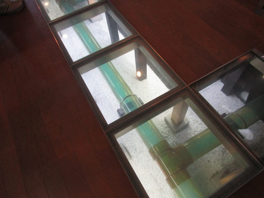 例えば、お家には実際のトイレやキッチンがあり、透けている床から見える排水管を見ることができる仕組みになっています。