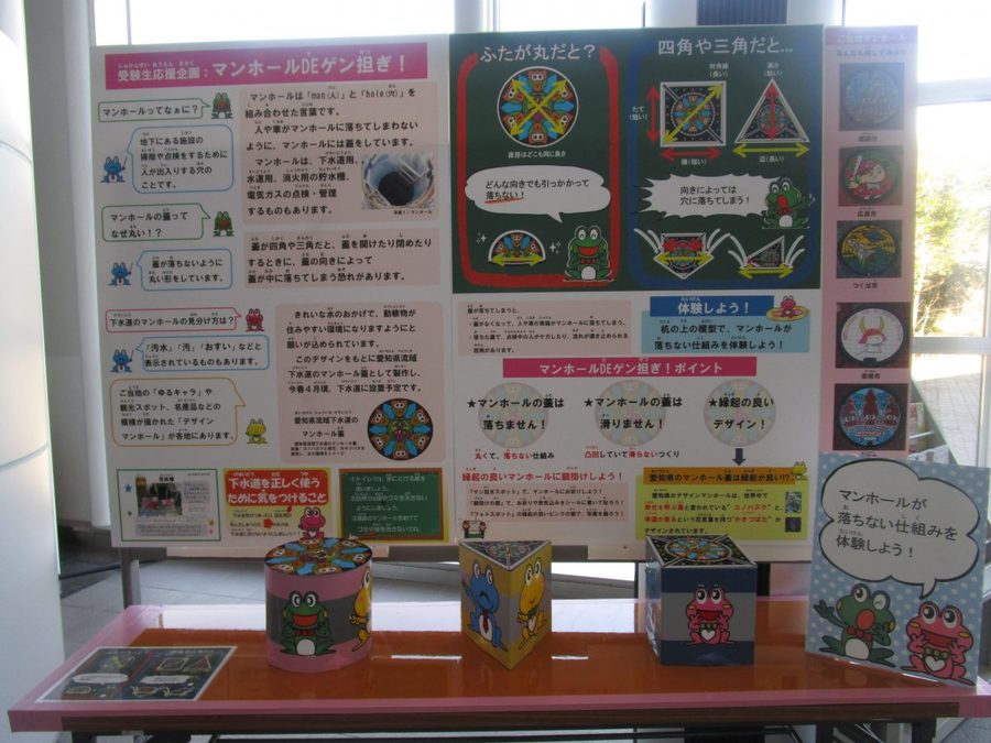なぜマンホールは落ちないの?ということを、パネルと模型で解説した展示です。