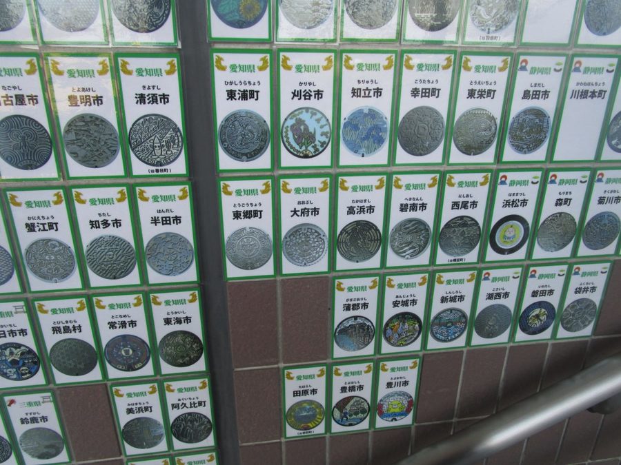 愛知県の17市町村の本物のマンホールの蓋も展示しています。
