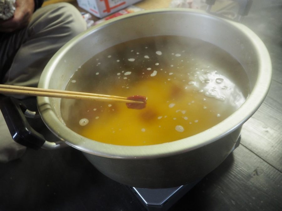 「地獄うどん」とは、みんなが集まる機会に、大きい鍋へ徳山唐辛子を入れて湯を沸かし、その辛味と香りが染み出たお湯でうどんを茹でる、旧徳山村の郷土料理です。
