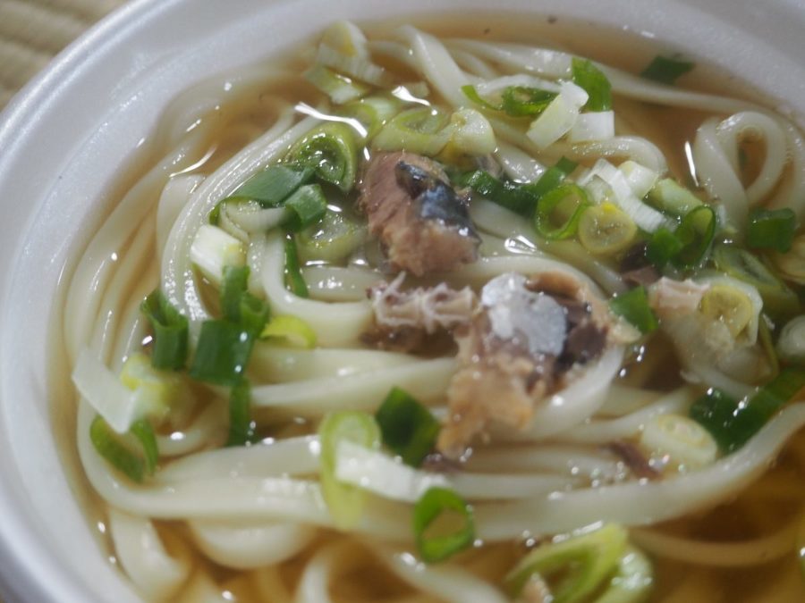 お好みでサバの缶詰やネギをしょうゆベースのおつゆで…