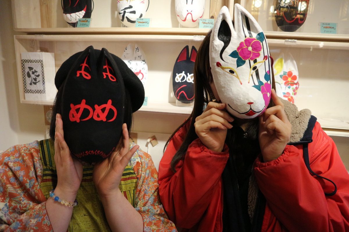 和紙で作られていて、実際に触ってみると、和紙の凹凸がそれぞれ違っていて、なんだか温かみが感じられる狐のお面でしたよ。