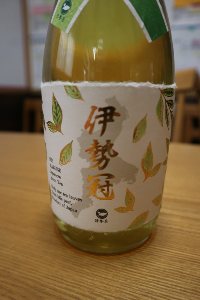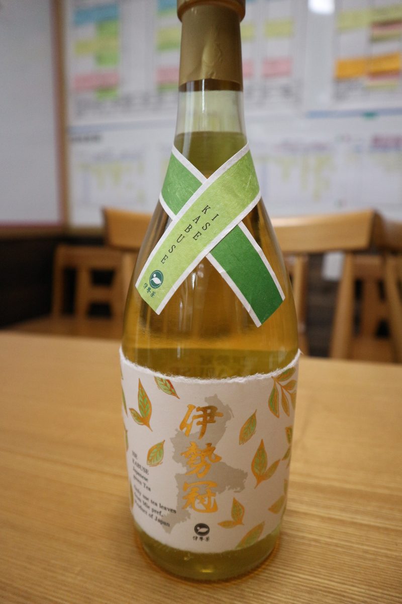 伊勢冠はワインボトルのようなビンに入っていて、パっと見るとお茶が入っているとは思えないですね。