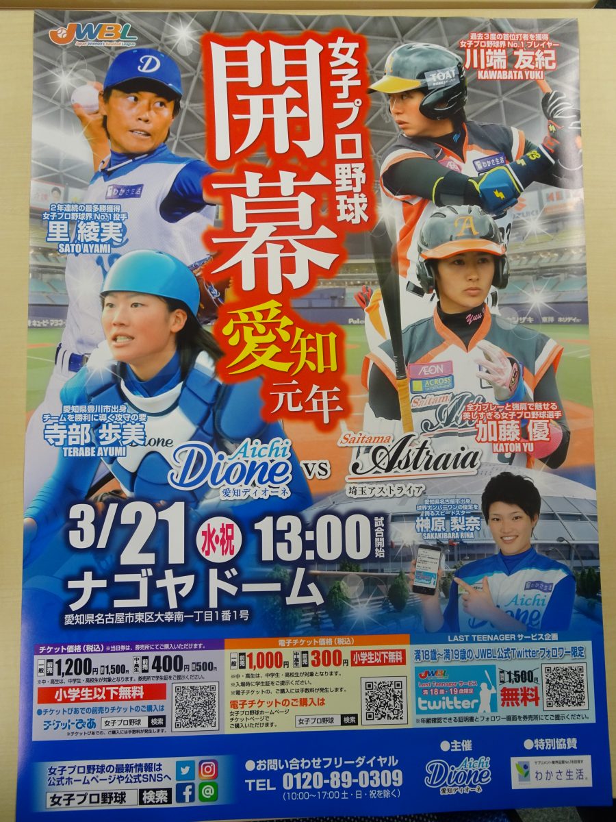 場所はナゴヤドームで、プレイボールは13時。ポスターにあるように「愛知元年」の開幕、これは見逃せません。