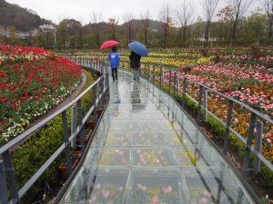 ガラスの回廊を歩いて、チューリップの空中散歩~