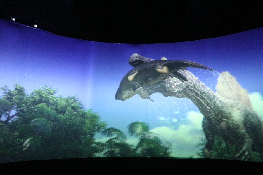 恐竜がテーマの映像を見せていただきましたが、恐竜が目の前に飛び出てきたりと大迫力で楽しめました。
