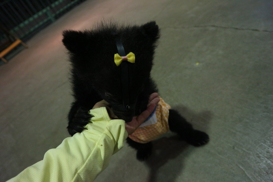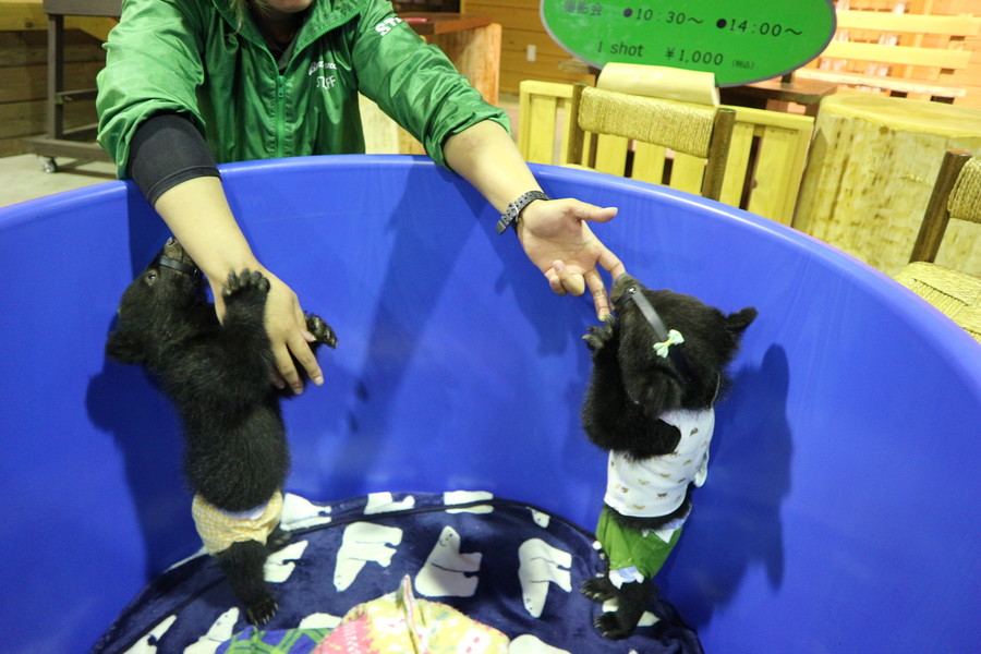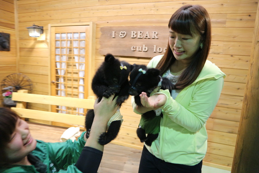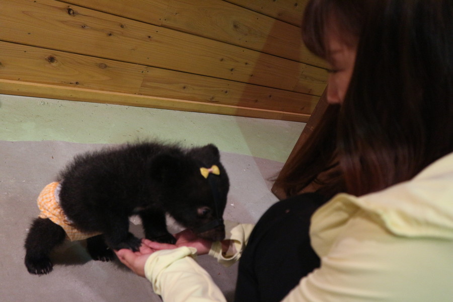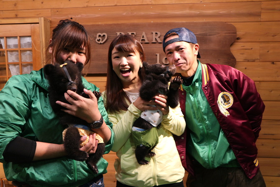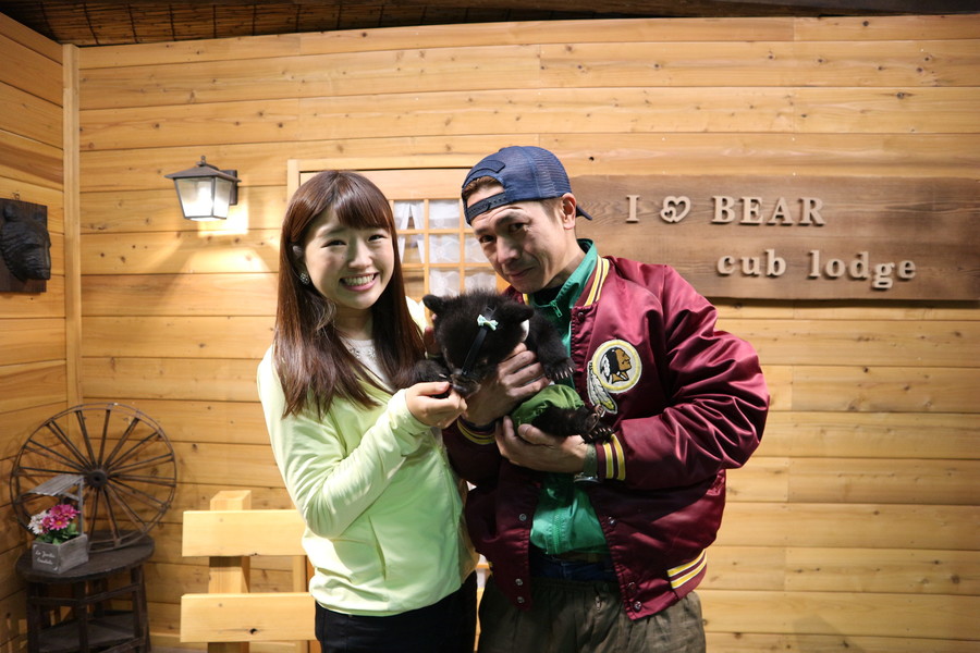 「ツキノワグマの赤ちゃんを抱っこして記念撮影」