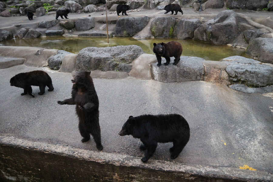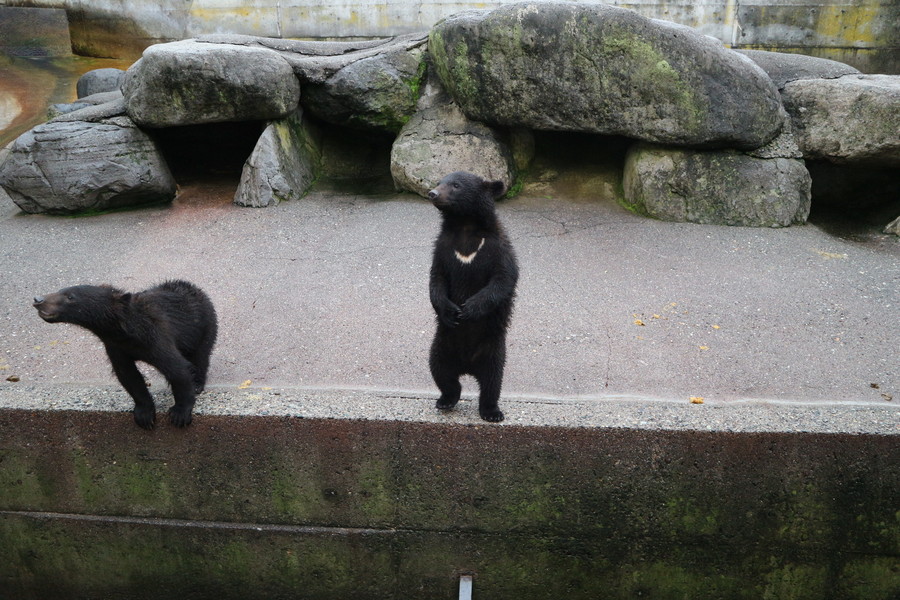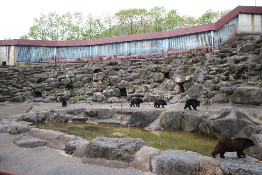 場内仕切りの中をたくさんのツキノワグマたちが元気に走り回っていました。