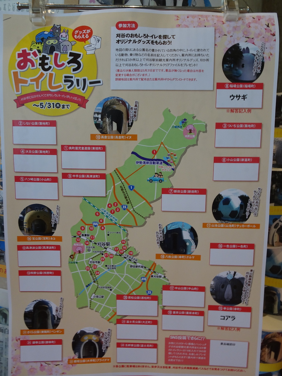 刈谷市内の公園にあるおもしろトイレのうち、25ヶ所の場所が記された専用マップが、観光案内所や特設サイトからダウンロードできるようになっています。