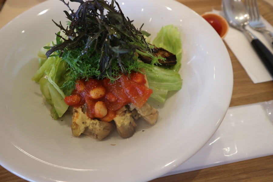 生野菜・温野菜・焼き野菜に加え、鶏肉のローストが摂れる一皿。