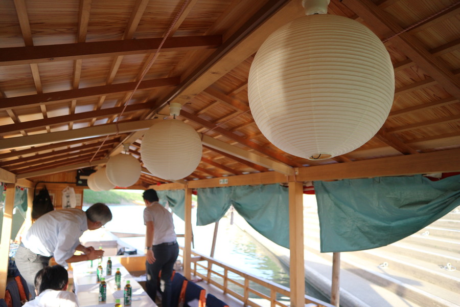 他の船と違い、岐阜の老舗印染業「吉田旗店」による涼しげなオリジナルのれん。