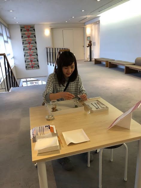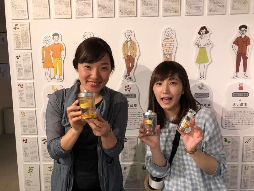 展示されたビンの香りを嗅ぎながら、好きな香りや色を探します。