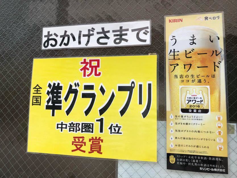 そして一昨年にキリンビール主催で生ビールの美味しいお店を決定する「うまい生ビールアワード」で全国2位に!