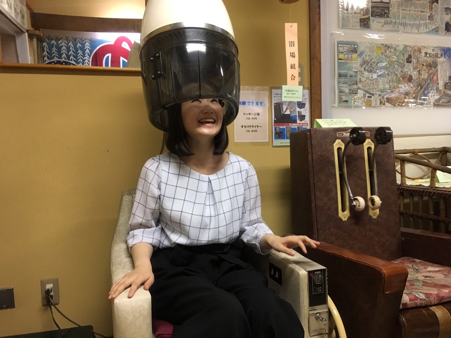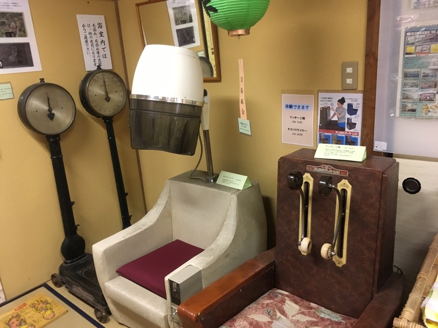 このオカマドライヤーとレトロなマッサージ機は実際にまだ動くので、お金を入れて体験することもできますよ。