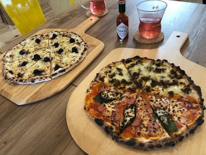 カフェで美味しいブルーベリーピザとマルゲリータ&カレーピザのハーフを頂きました!