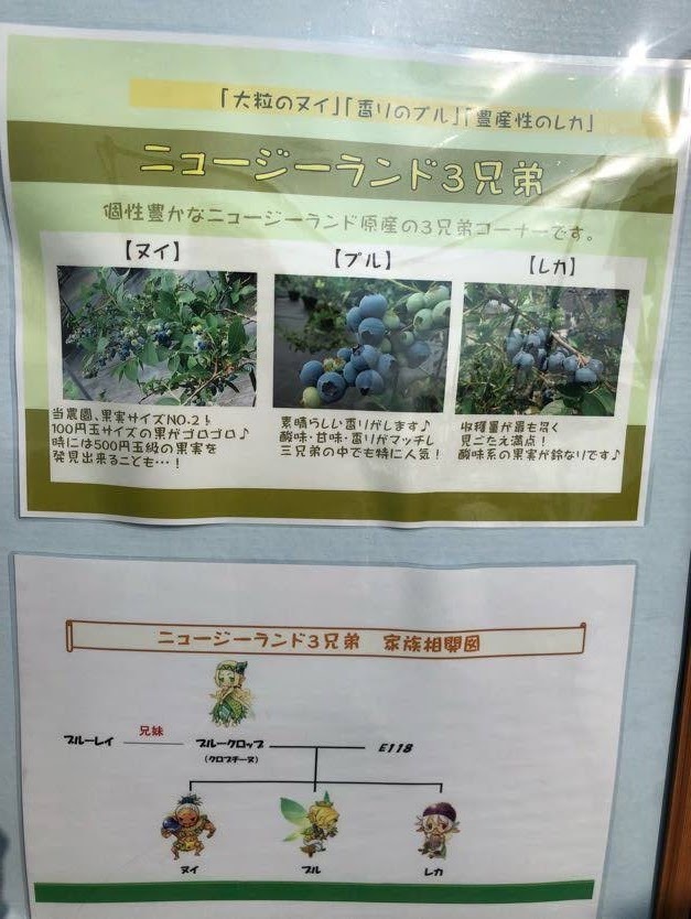 品種の相関図などが展示されており、ブルーベリーを学びながら頂けるのもこちらの農園の魅力。