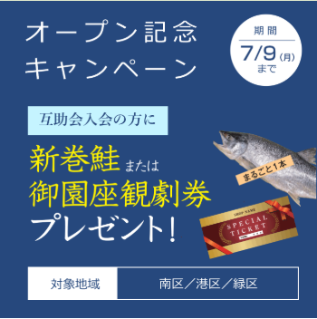 また、互助会入会の方には、鮭か御園座観劇券をプレゼント!