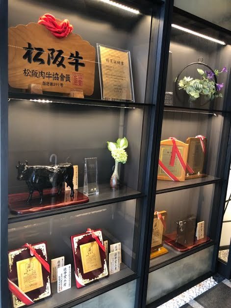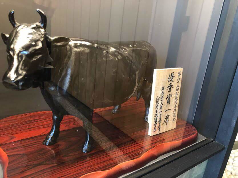 これは毎年、精肉店「朝日屋」が各所で行われる「松阪牛の品評会」のセリに参加し競り落とした優秀賞一席の楯なんです!