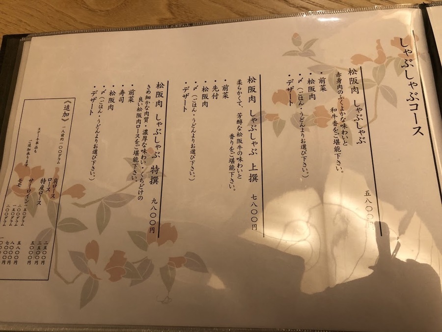 ランチとディナーとではメニューが少し異なりますが、松阪肉の種類として特撰、上撰を用意!
