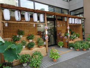 夏の風物詩のひとつである朝顔を朝顔小屋に設置し