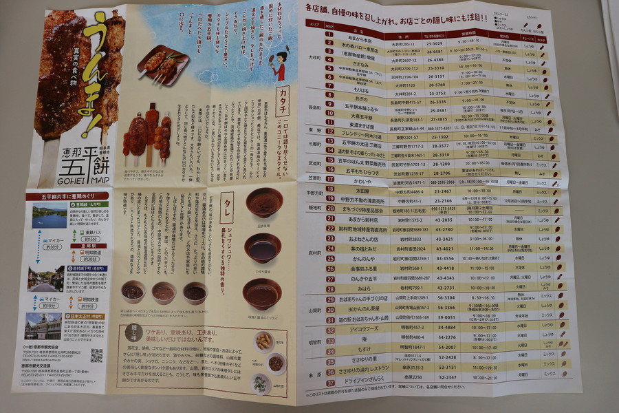 そして恵那市の12地域にある37店舗の、五平餅が食べられるお店が載っています。