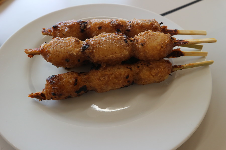 取材では2店舗のわらじ型、団子型のしょうゆ味の五平餅をいただきました。