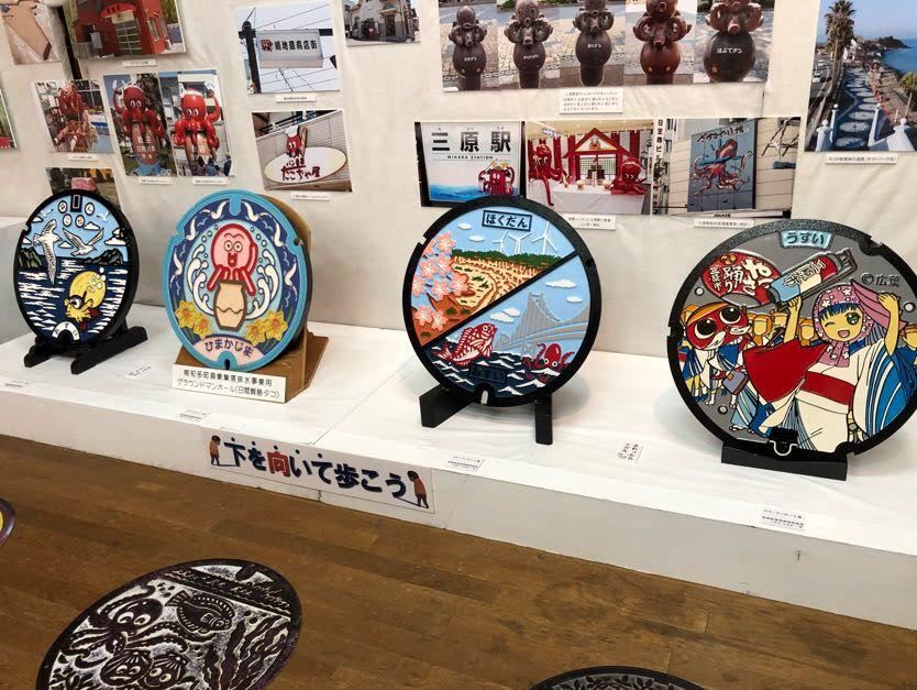 今や大ブームのマンホール!タコの絵が入ったものを集めて展示してあります。