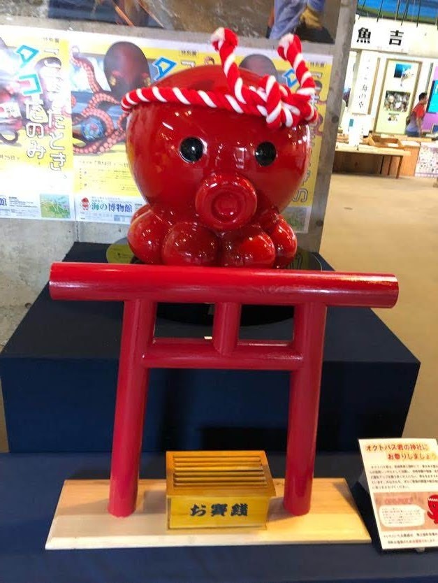 タコのプチ神社もあったり、可愛いグッズも展示しており、一部は販売もしています。