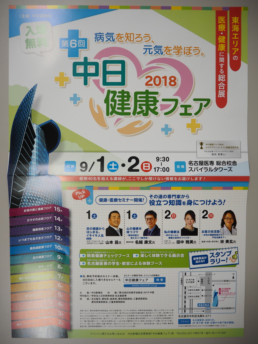 今週末の9月1日と2日に中日新聞主催で「中日健康フェア2018」が開催されます✨