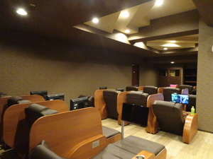 テレビ付きのゴージャスなリクライニングチェアが全98席あるリラックスコーナー