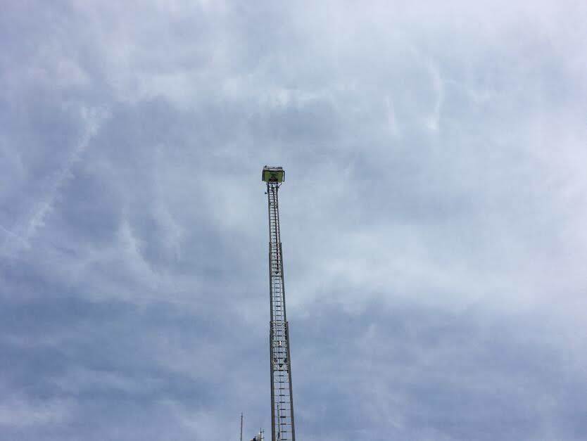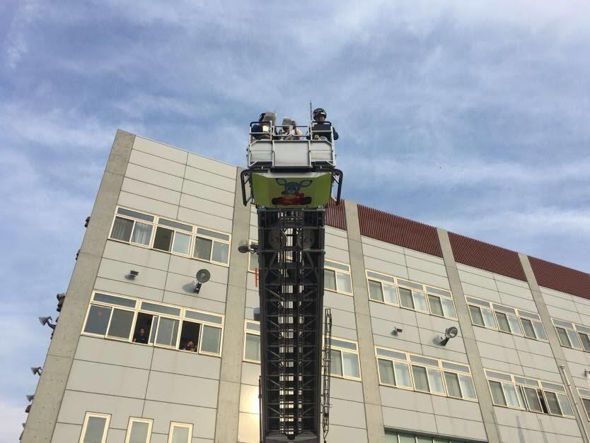 週一回ははしご車を使っての訓練をするのですが、救助される役もはしご車になれた消防士です。