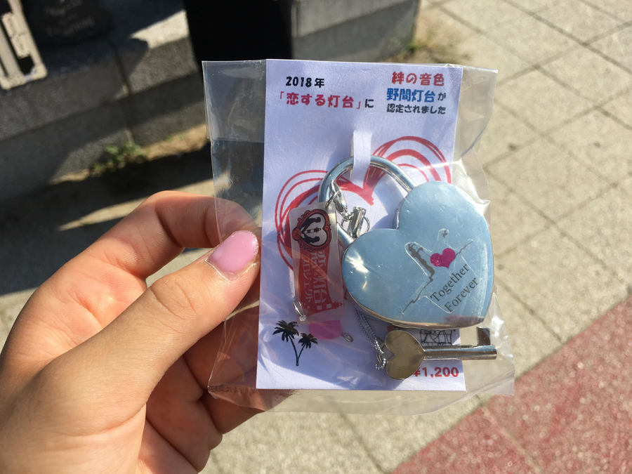 この南京錠は、野間埼灯台の近くにある「食と健康の館」などで購入できるそうです。