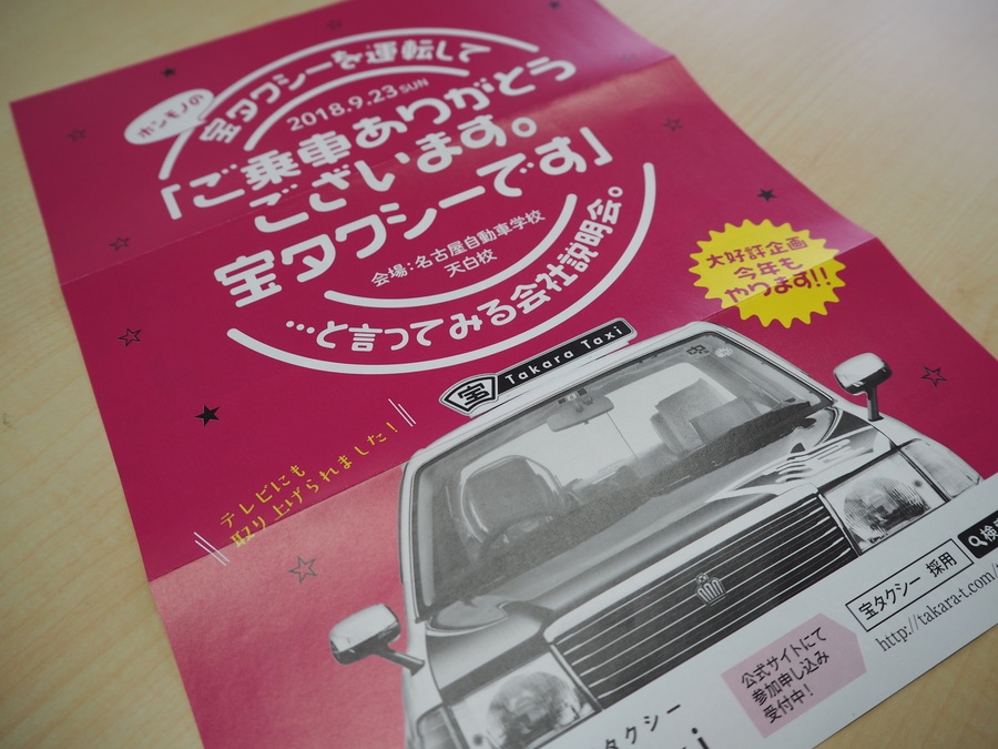 宝タクシーでは昨年、業界初となる「ホンモノの宝タクシーを運転してみる会社説明会」が開催され話題となりました♪