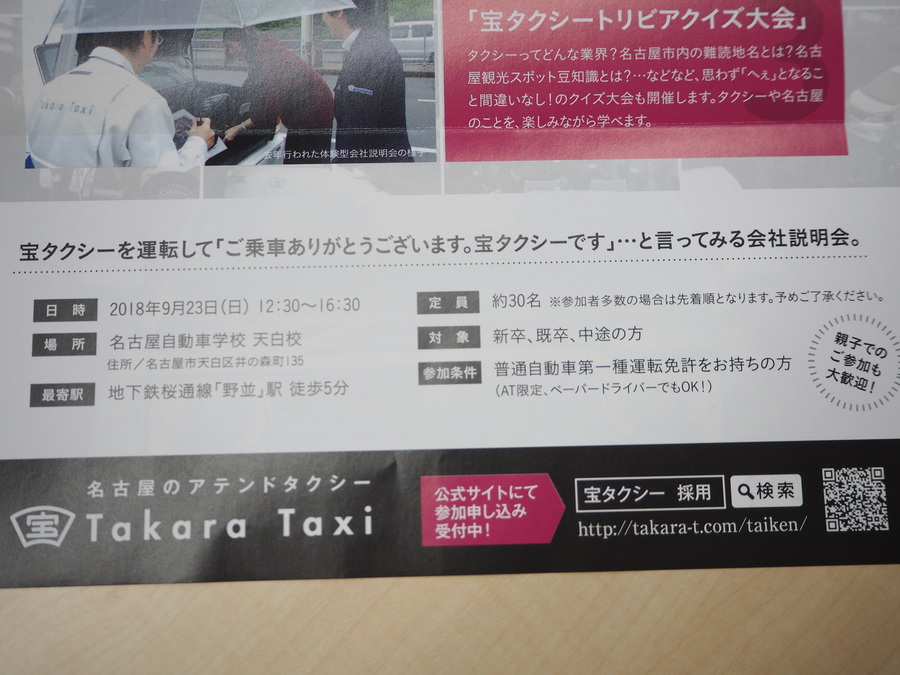 「ホンモノの宝タクシーを運転してみる会社説明会」は