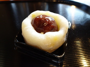 中には栗餡、杵つきのお餅の中にも栗が入っていて