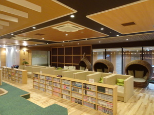 いろんなソファーがあったり、個室風ボックスなどあって