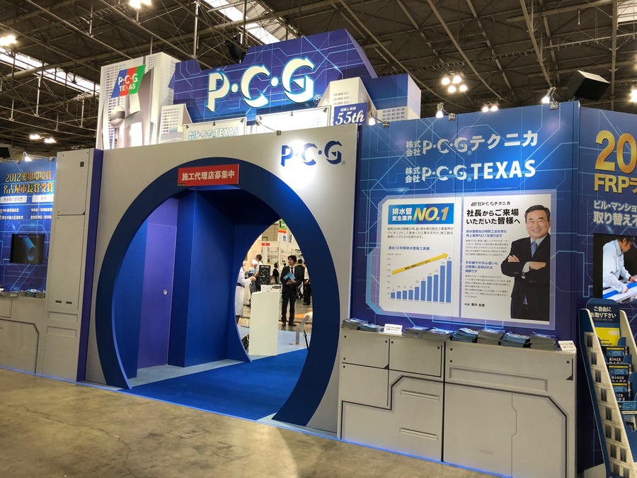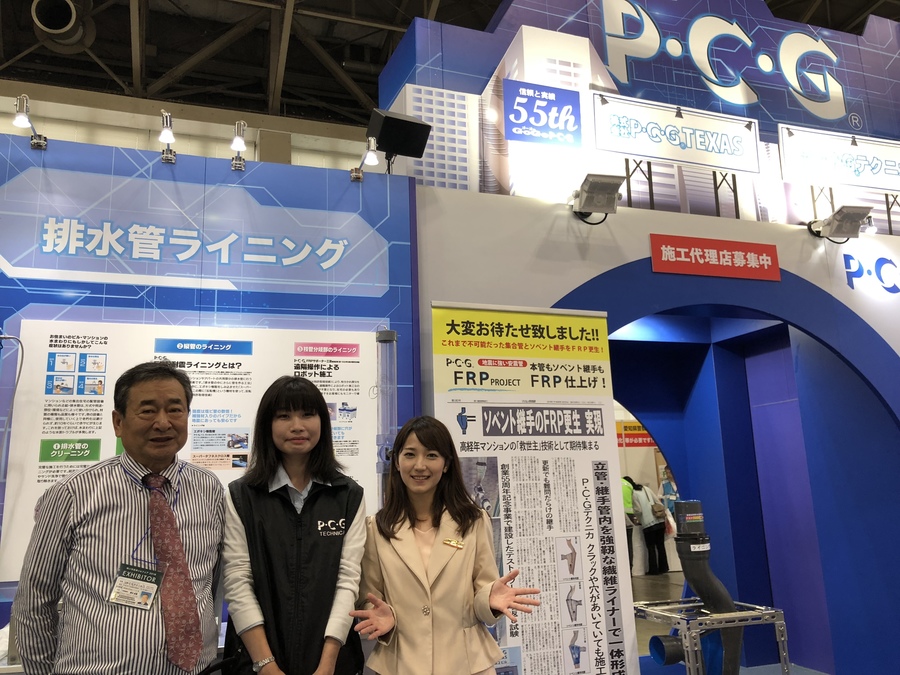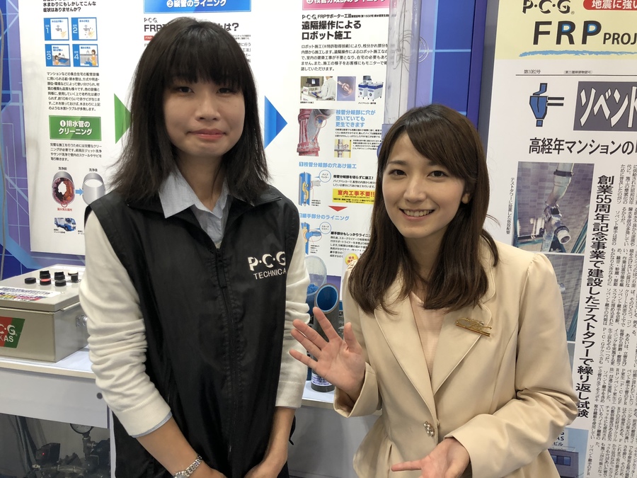 P・C・Gテクニカでは、マンションの古くなった排水管を再生するパイプライニングを展示しています。