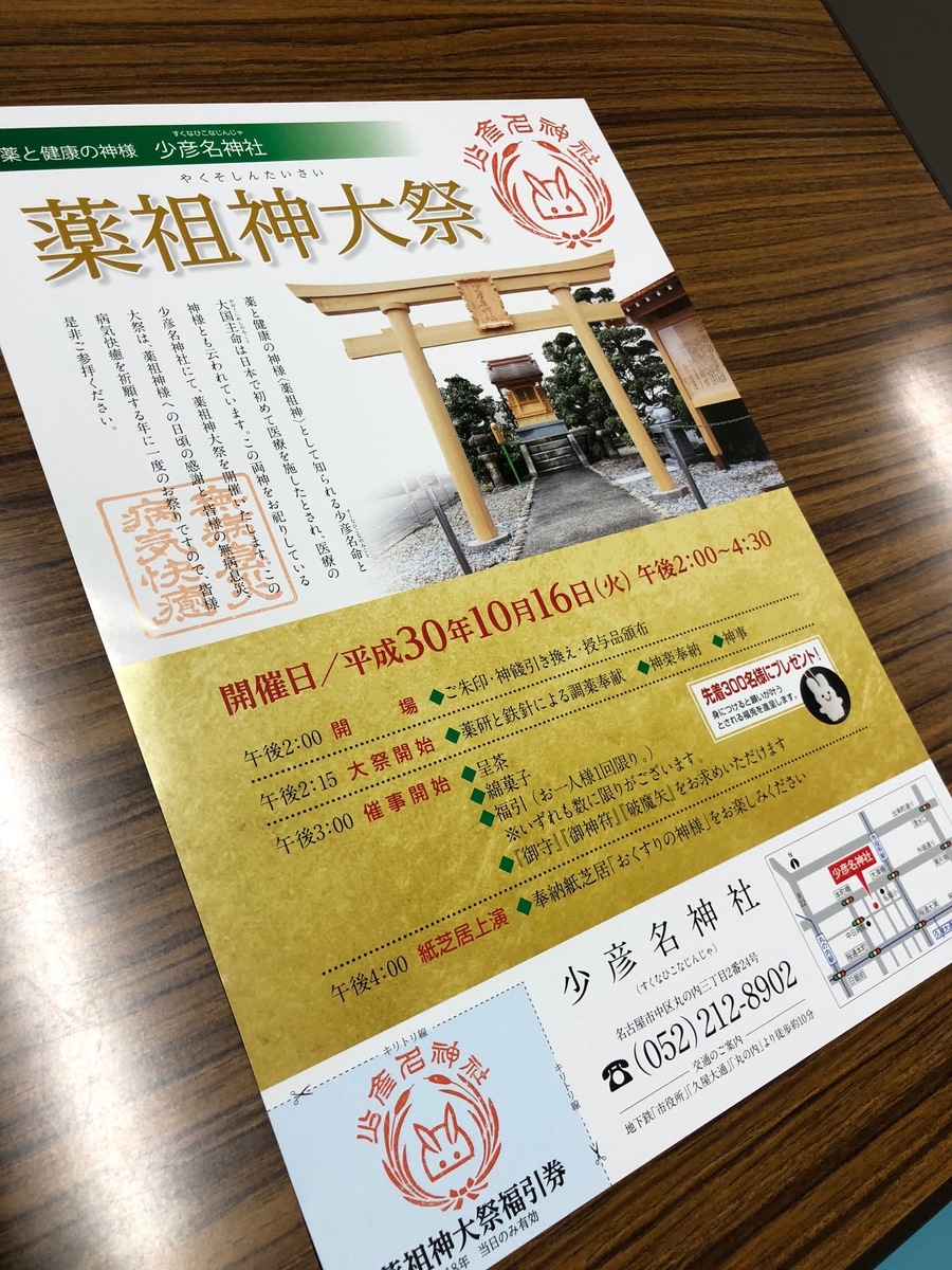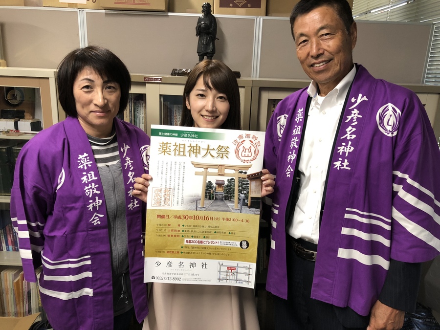 名古屋市中区丸の内にある「薬と健康の神様」の「少彦名神社」では、明日10/16(火)に、お祭りを行うということでお話を伺ってきました。