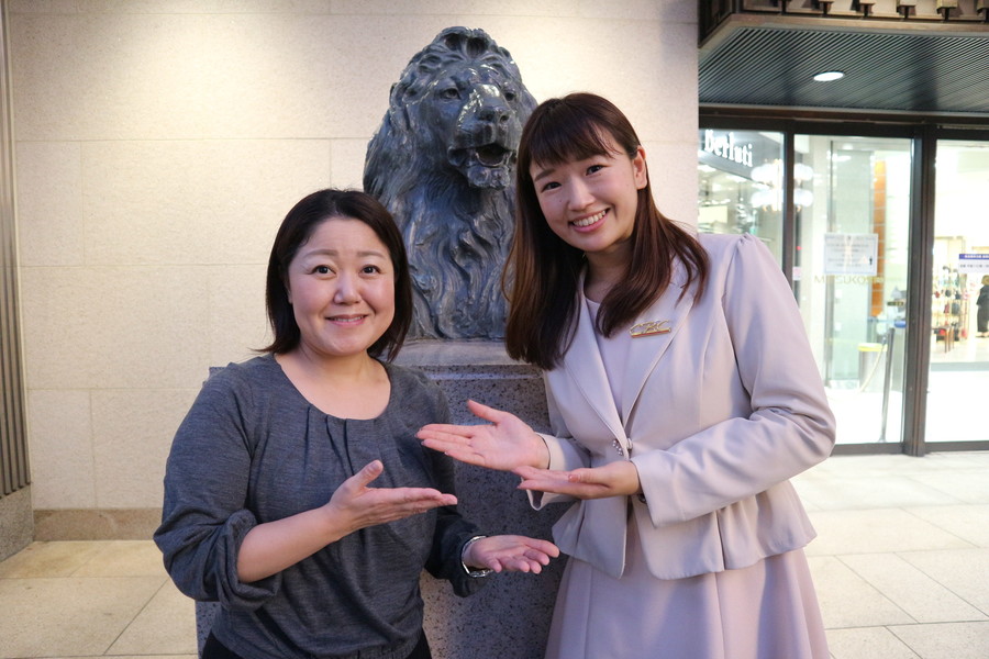 三越のライオンの前で