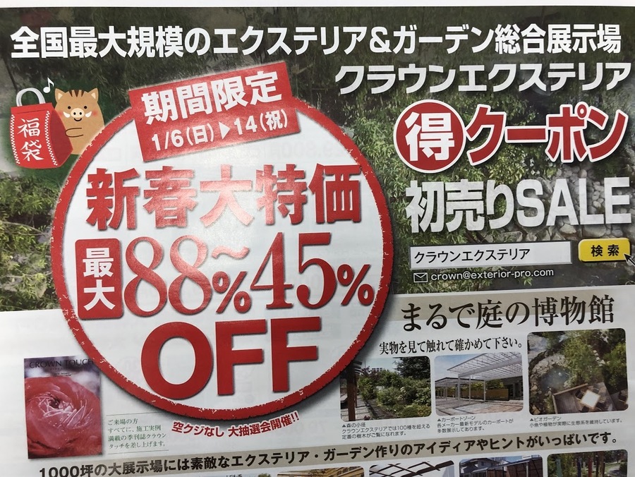 ウッドデッキやカーポートなどが45%~88%まで値下げされて販売中!