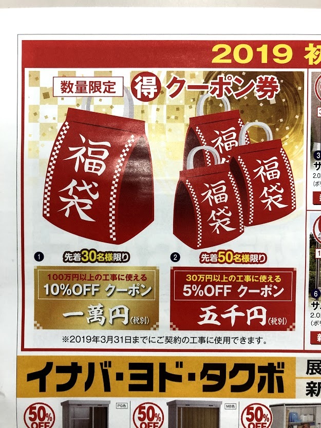 こちらは木造工事などで、あと少しで予算に届くのに!という時にドーンと値引きのできるクーポンです。非常にお得^^