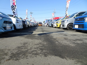 広い敷地内にはピカピカの軽自動車かズラリ🚗