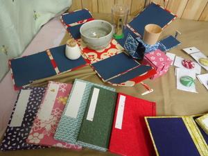 茶道具一式を入れるケースや豆本のイヤリングやストラップなどなど