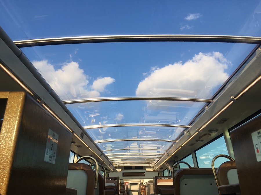 1階がキッチン・2階は対面式の客席の2階建てバス✨
