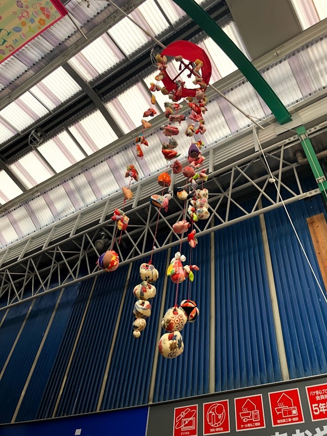 商店街のアーケードには吊るしびなが^^